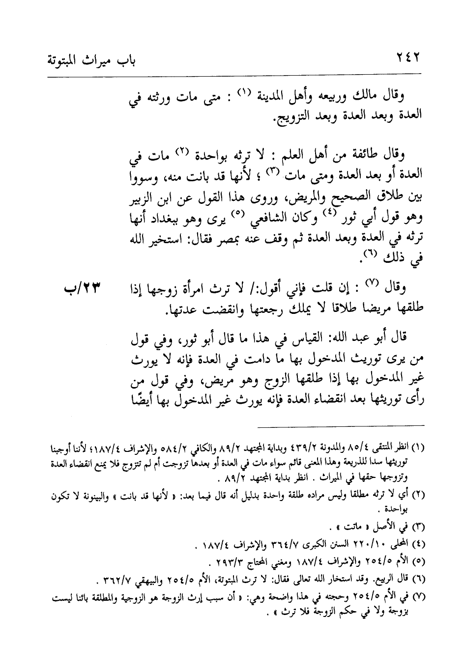 وكَانَ الشَّافِعِيّ يَرَى وَهُوَ ببغداد أن ترثه فِي العدة وبَعْد العدة ثُمَّ وقف عنه بمصر فقال: أستخير الله فِي ذَلِكَ.