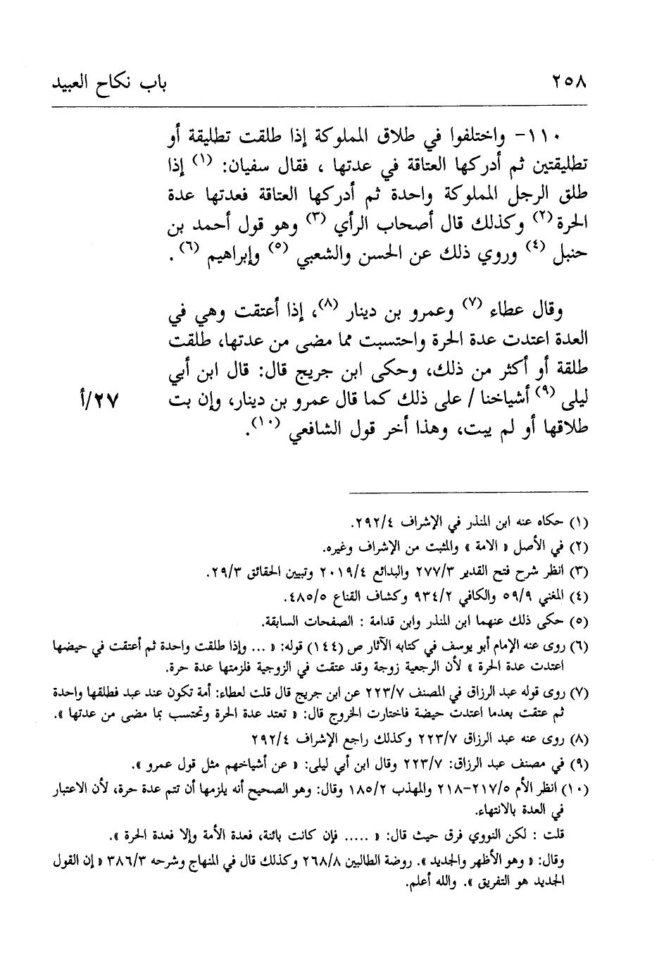 110- واخْتَلَفُوْا فِي المملوكة إِذَا طلقت تطليقة أَوْ تطليقتين ثُمَّ أدركتها العناقة فِي عدتها