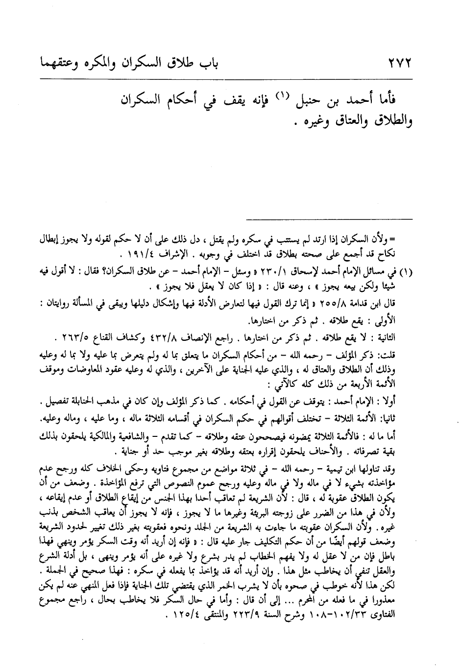 فأما أَحْمَد بْن حَنْبَلٍ فَإِنَّهُ يقف فِي كُلّ أحكام السكران الطلاق والعتاق وغيره