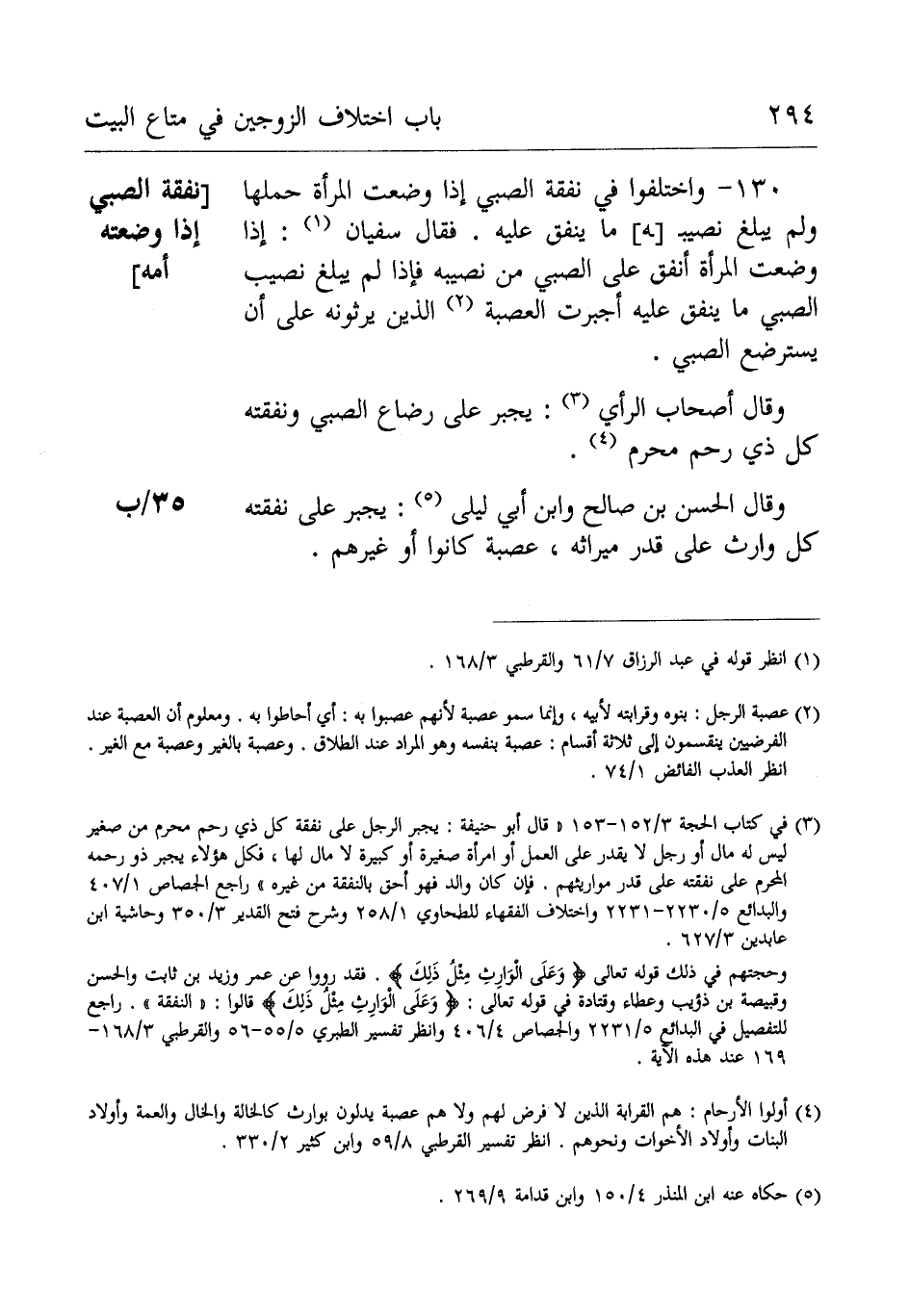 130- واخْتَلَفُوْا فِي نفقة الصَّبِيّ إِذَا وضعت الْمَرْأَة حملها ولم يبلغ نصيب ما ينفق عَلَيْهِ عَلَى من تكون نفقته
