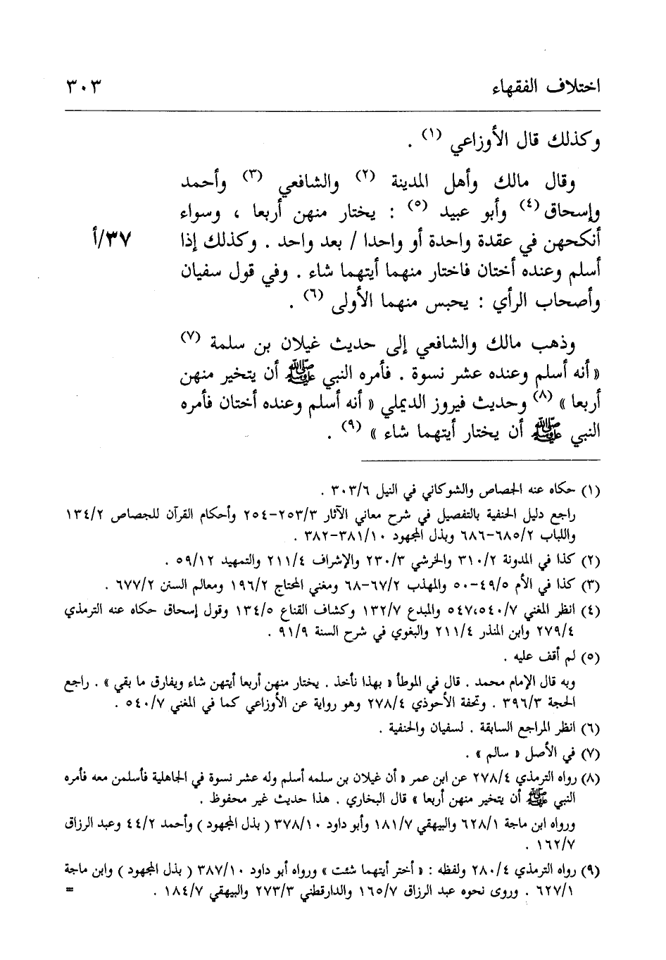 وَقَالَ مَالِكٌ وَأَهْلُ الْمَدِيْنَةِ وَالشَّافِعِيُّ وَأَحْمَدُ وَإِسْحَاقُ وأَبُوْعُبَيْدٍ: يختار منهن سِوَى نكحهن فِي عقدة واحدة أَوْ واحدا [37/أ] بَعْد واحد.