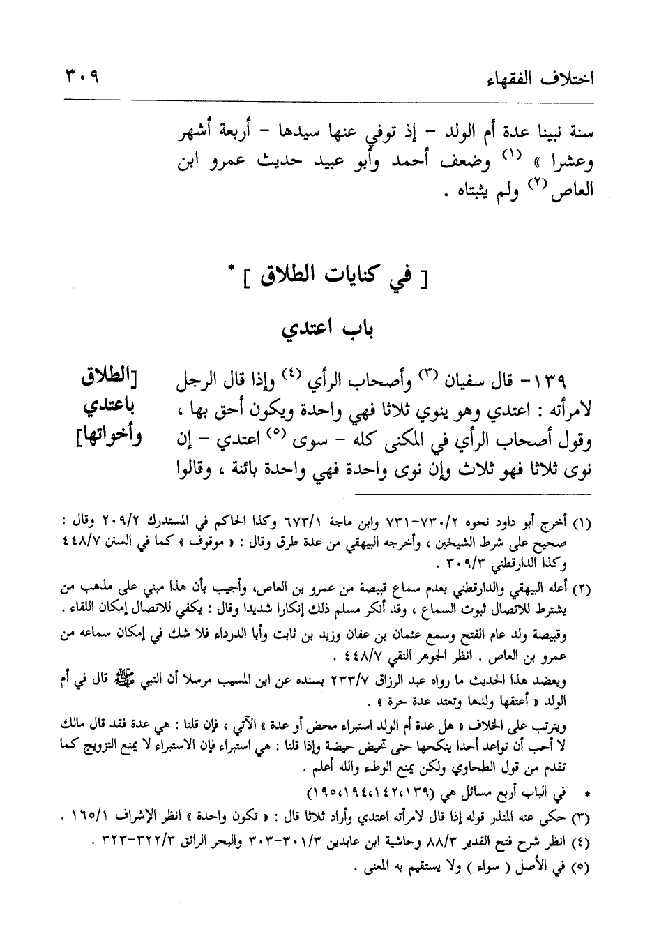 139- قَالَ سُفْيَانُ وأَصْحَاب الرَّأْيِ إِذَاقَالَ الرَّجُل لامرأته: اعتدي وَهُوَ