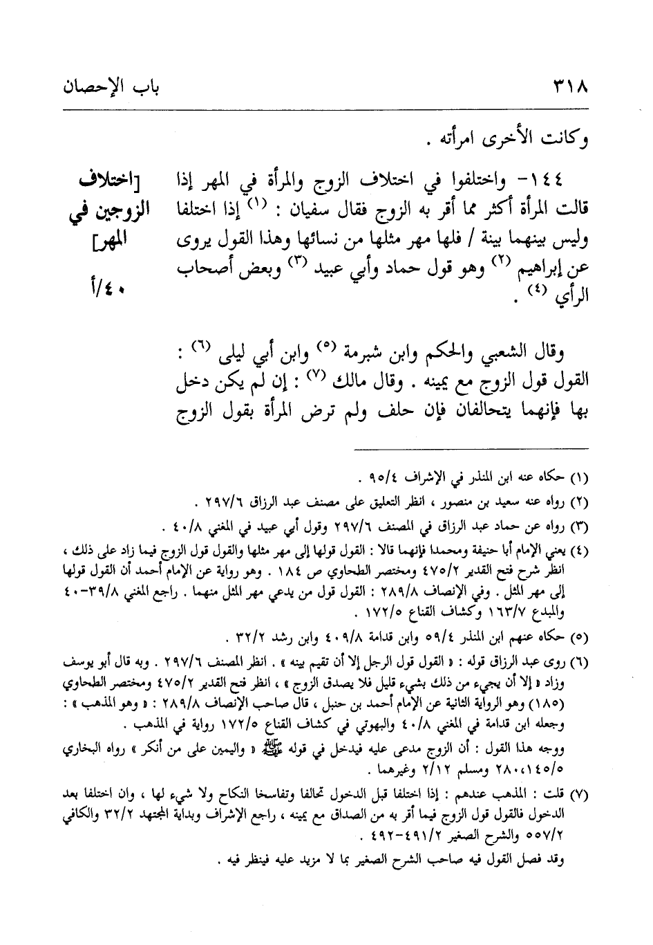 144- واخْتَلَفُوْا فِي اختلاف الزوج والْمَرْأَة فِي المهر إِذَا قالت الْمَرْأَة أكثر مما أقر بِهِ الزوج:
