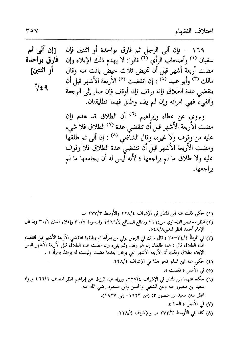 فإن سُفْيَان وأَصْحَاب الرَّأْيِ قَالُوْا: لَا يهدم ذَلِكَ الإيلاء وإن مضت أربعة أشهر قبل أن تحيض ثلاث حيض بانت منه.