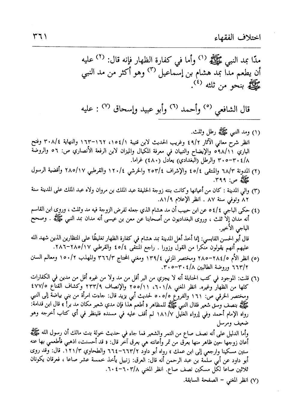 وأما في كفارة الظِّهَار فَإِنَّهُ قال: عَلَيْهِ أن يطعم مدا بمد هشام بن إسماعيل، وهو أكثر من مد النبي صلّى الله عَلَيْهِ وسلّم بنحو من ثلثه.