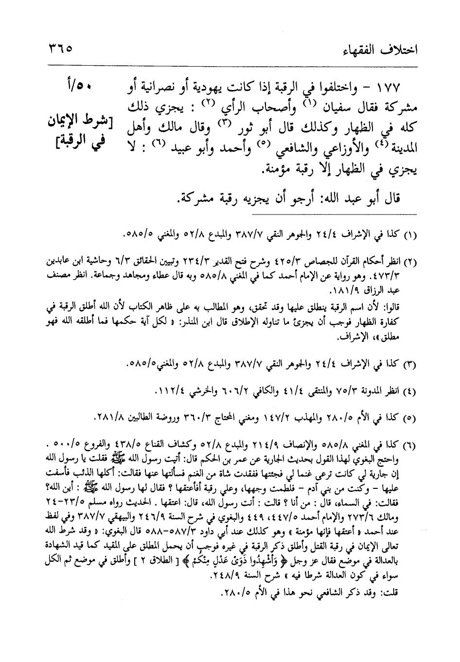 177- واخْتَلَفُوْا فِي الرقبة إِذَا كانت يهودية أَوْ نصرانية أَوْ مشركة