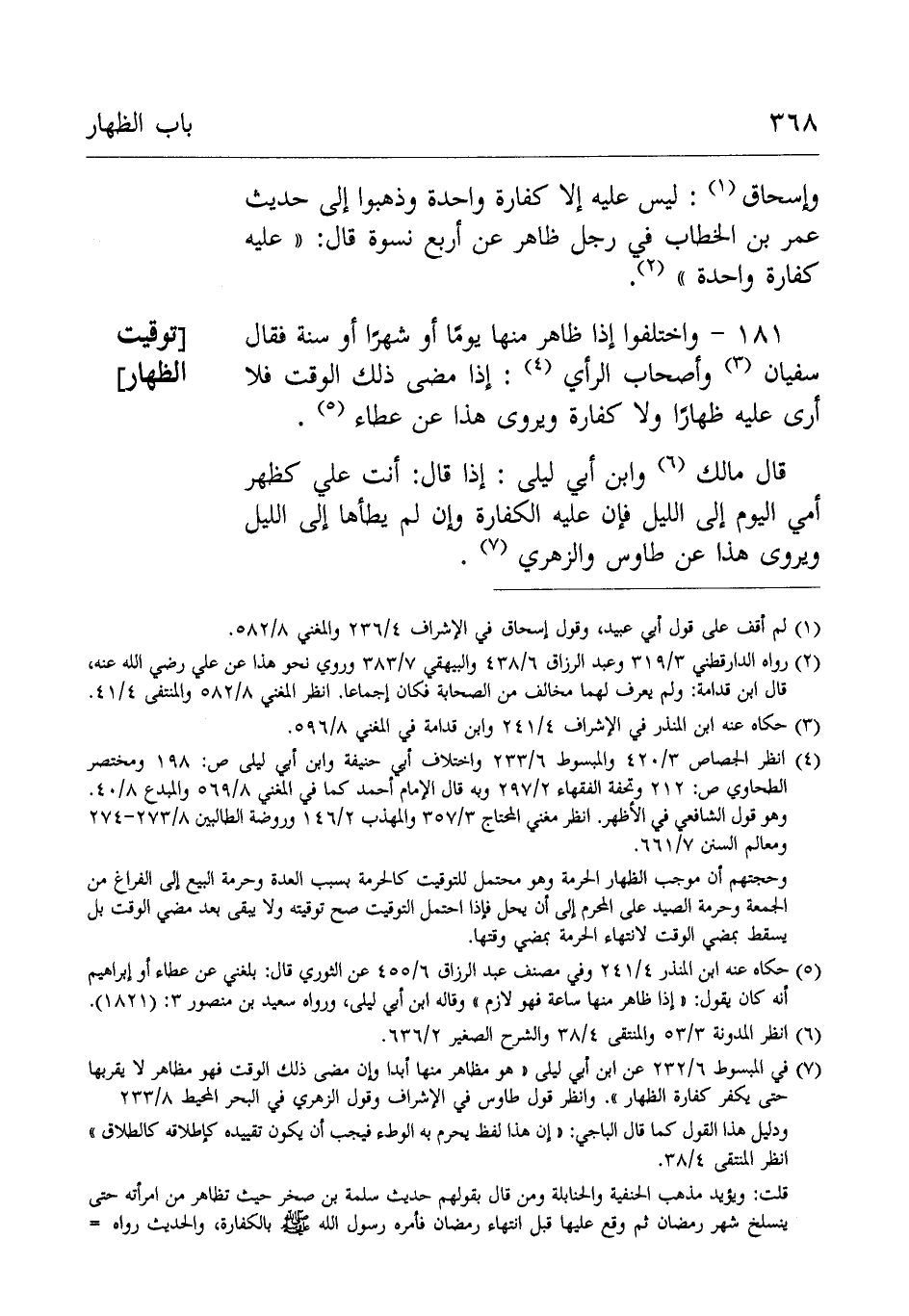 181- واخْتَلَفُوْا إِذَا ظاهر منها يوما أَوْ شهر أَوْ سنة