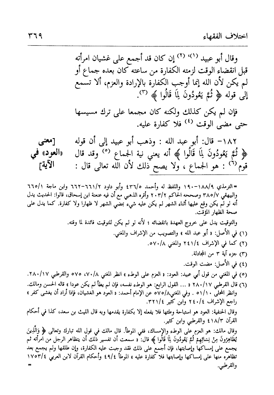 182- قَالَ أَبُوْ عَبْدِ اللهِ: وذهب أَبُوْعُبَيْدٍ عَلَى أن قوله: { {ثُمَّ يَعُودُونَ لِمَا قَالُوا [المجادلة: 3] يعني نية الْجِمَاع.