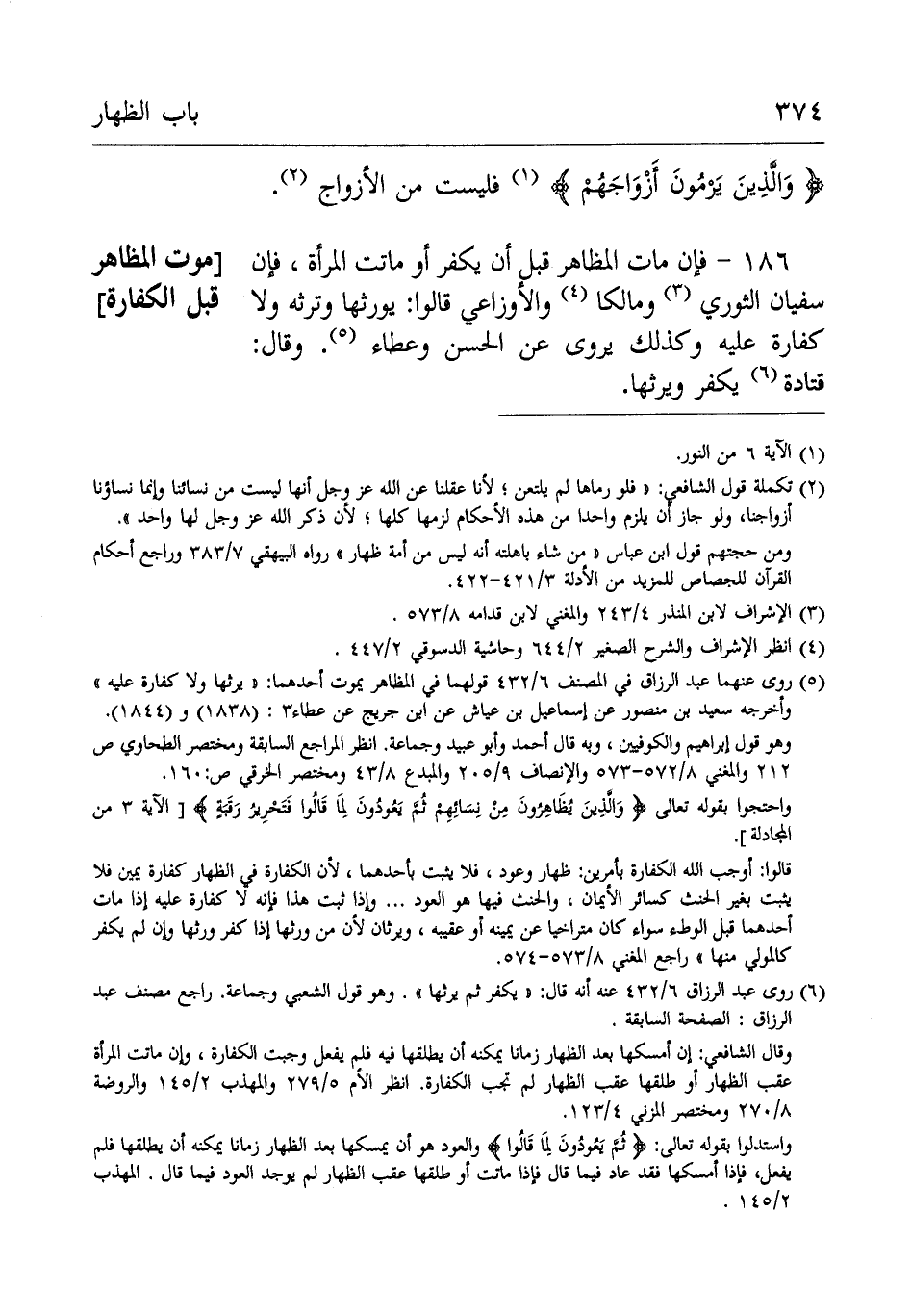 186- فإن مَاتَ المظاهر قبل أن يكفر أَوْ ماتت المرأة