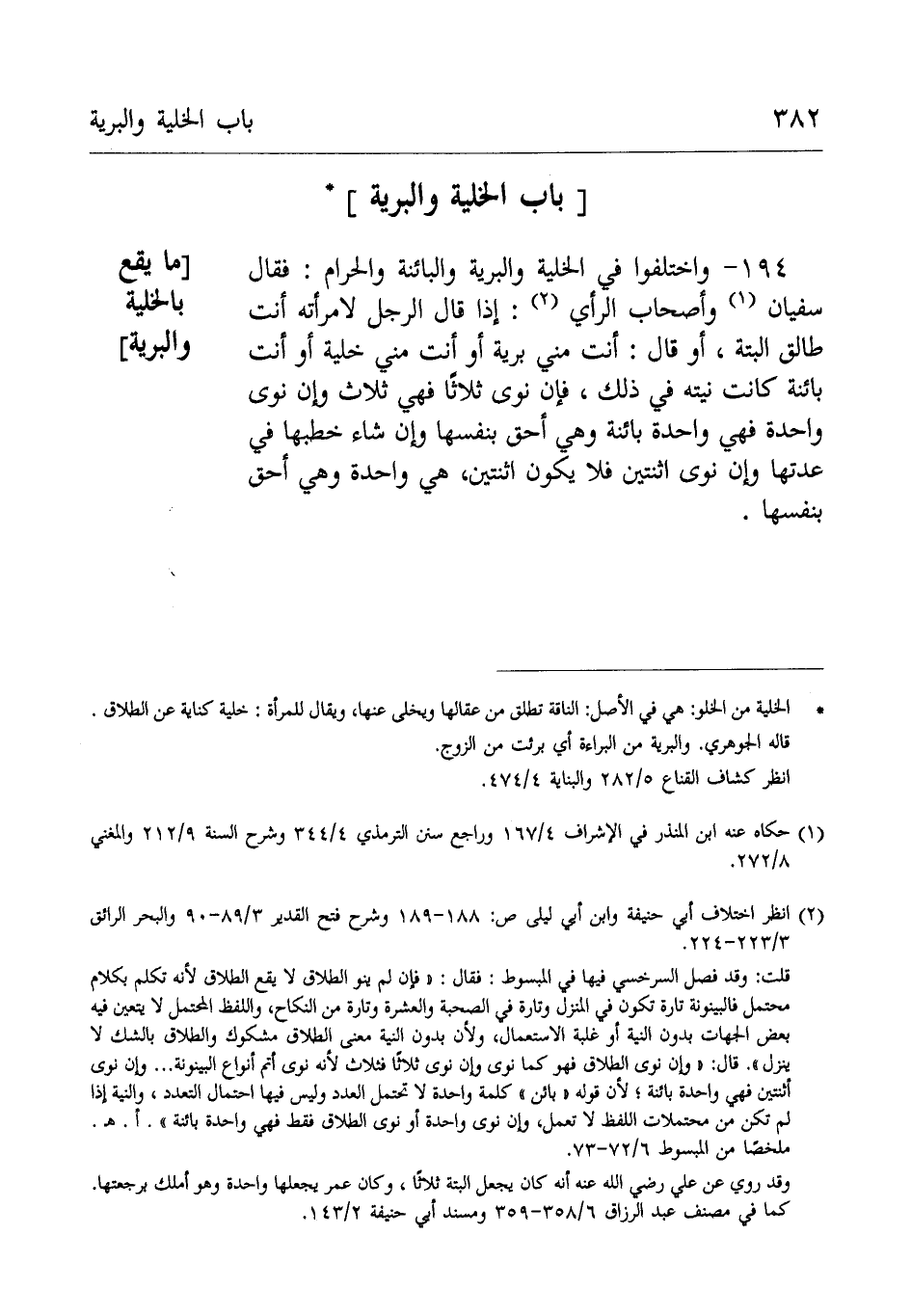 194- واخْتَلَفُوْا فِي الخلية والبرية والبائنة والحرام: