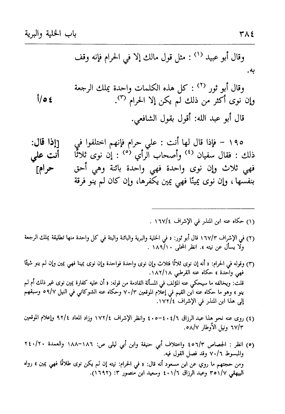 195- فَإِذَاقَالَ لها: أَنْتَ علي حرام فإنهم اخْتَلَفُوْا فِي ذَلِكَ: