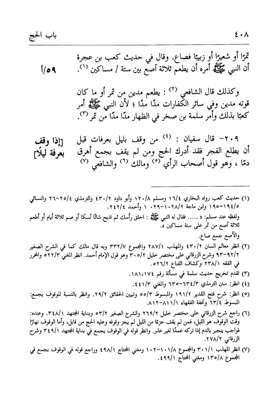 209- قَالَ سُفْيَانُ: من وقف بليل بعرفات قبل أن يطلع الفجر فقد أدرك الحج ومن لم يقف بجمع أهرق دما.