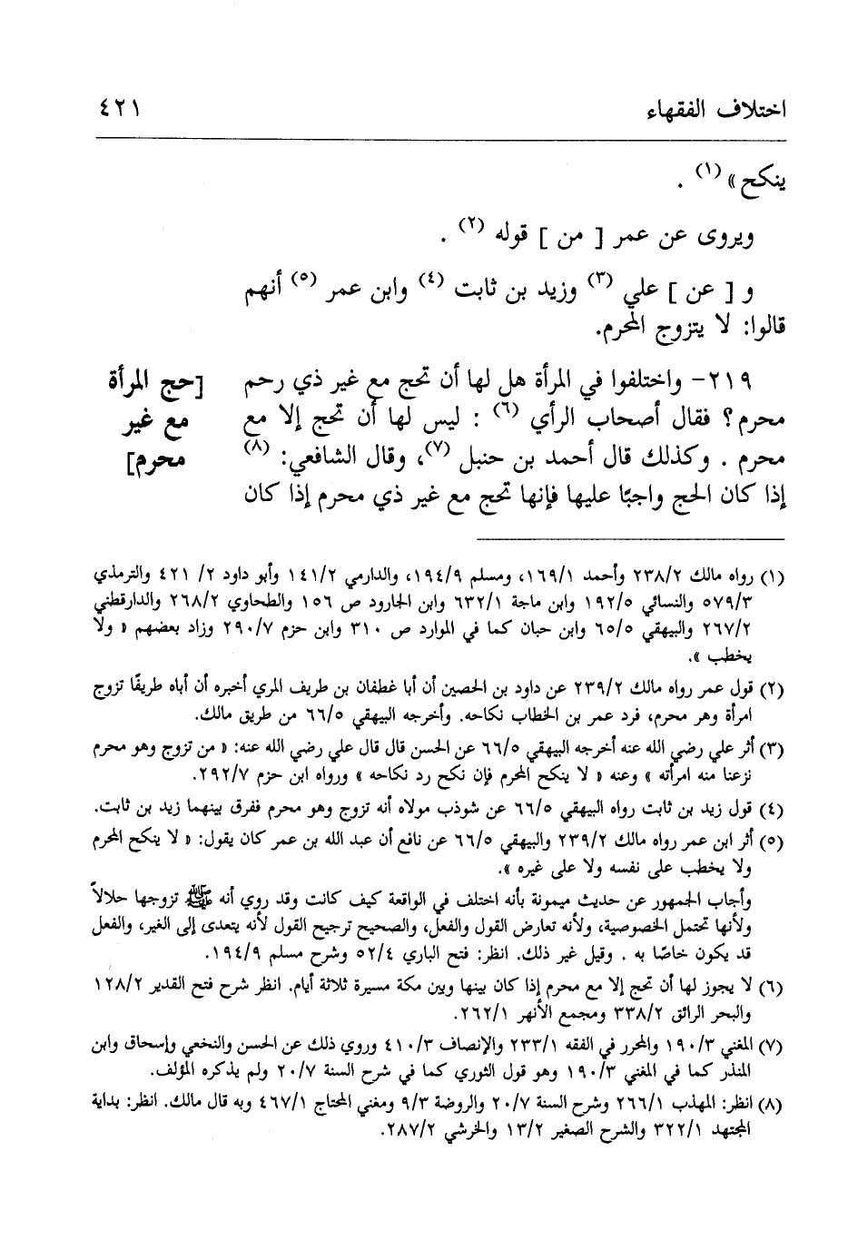 219- واخْتَلَفُوْا فِي الْمَرْأَة هل لها أن تحج مَعَغَيْر ذي رحم محرم؟