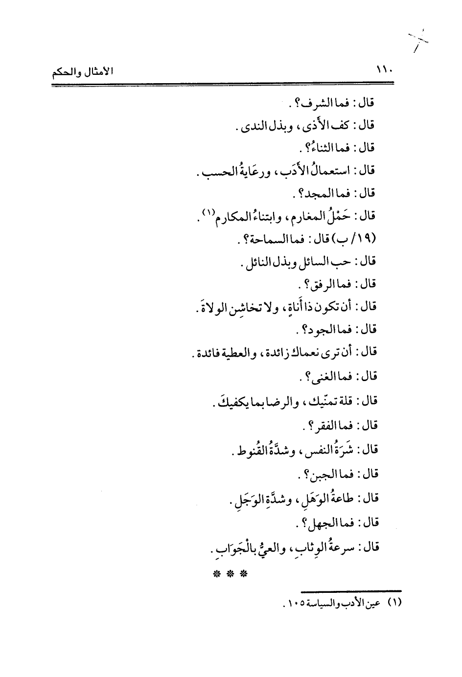 قال: استعمالُ الأدَب، ورعَايةُ الحسب.