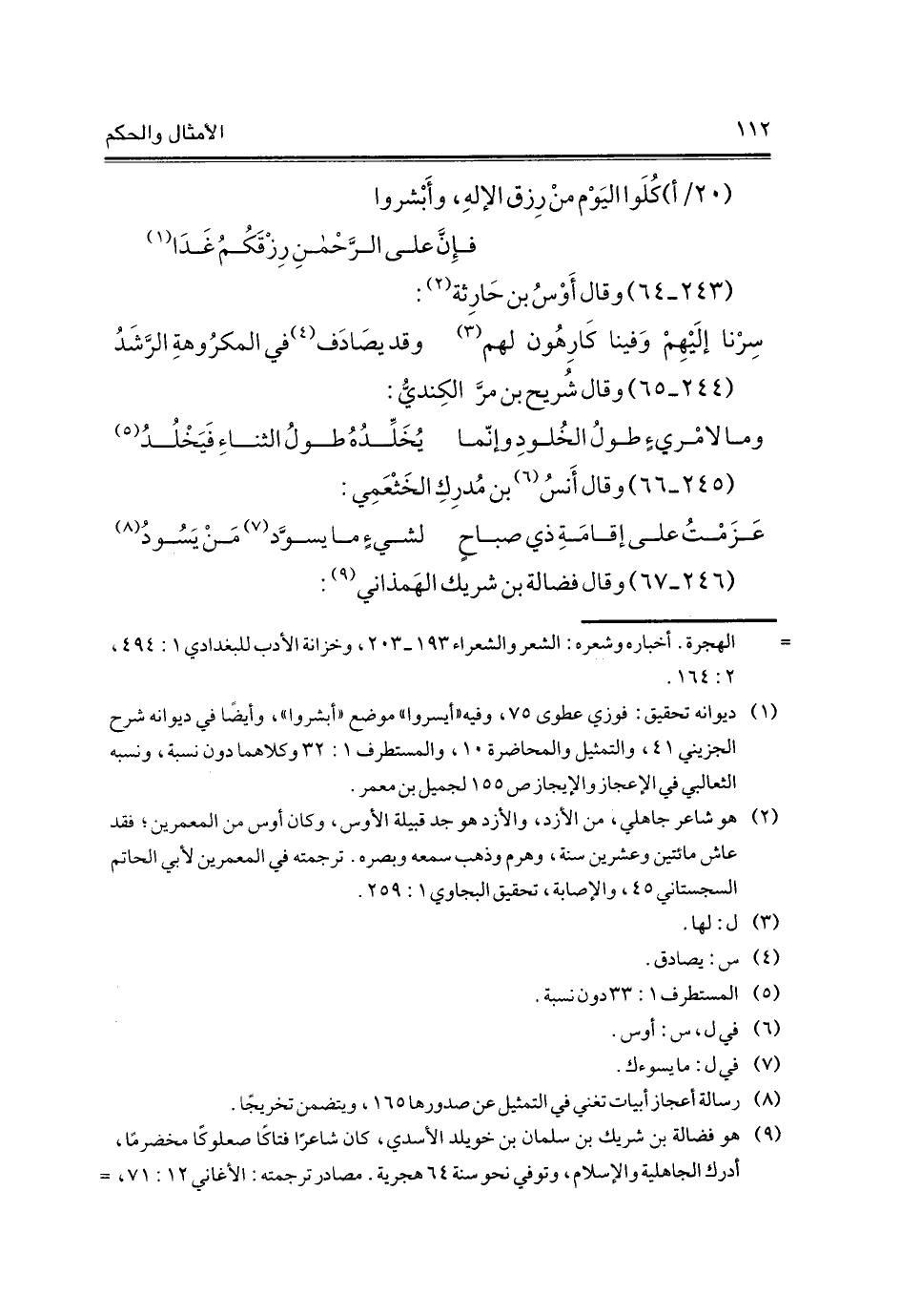 (¬8) رسالة أعجاز أبيات تغني في التمثيل عن صدورها 165، ويتضمن تخريجًا.