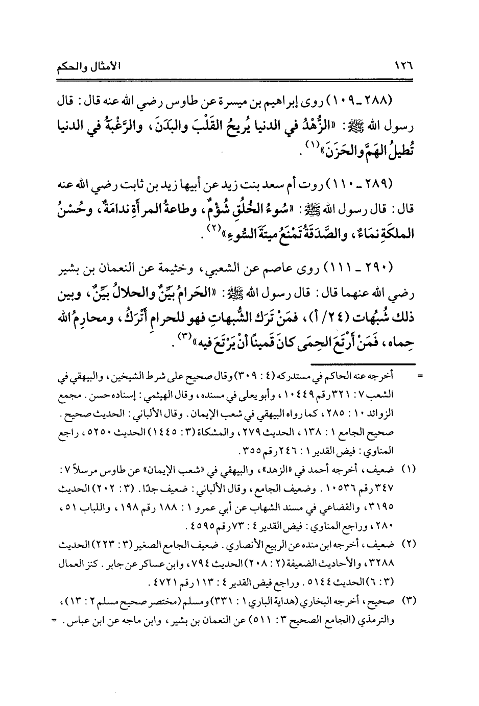 (¬3) صحيح، أخرجه البخاري (هداية الباري 1: 331) ومسلم (مختصر صحيح مسلم 2: 13)، والترمذي (الجامع الصحيح 3: 511) عن النعمان بن بشير، وابن ماجه عن ابن عباس =