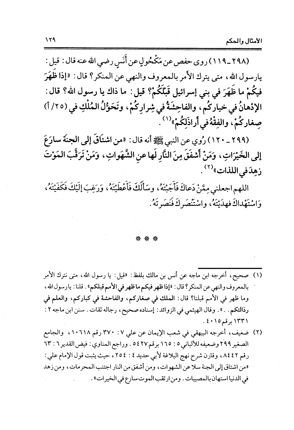 (299 - 120) رُوي عن النبي - صلى الله عليه وسلم - أنه قال: "من اشتَاقَ إلى الجنَة سارَعَ إلى الخَيْرَاتِ، وَمَنْ أشفَقَ مِنَ النَّارِ لَها عنِ الشَّهَواتِ، وَمَنْ تَرَقَّبَ المَوْتَ زهِدَ في اللذات" (¬2).