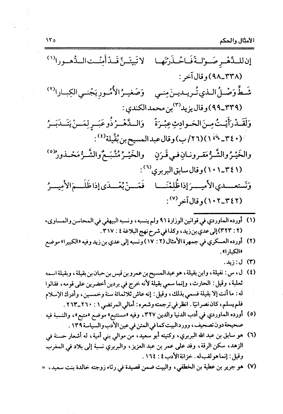 (¬1) أورده الماوردي في قوانين الوزارة 91 ولم ينسبه، ونسبه البيهقي في المحاسن والمساوئ (2: 323) إلى عدي بن زيد، وكذا في شرح نهج البلاغة 4: 317.