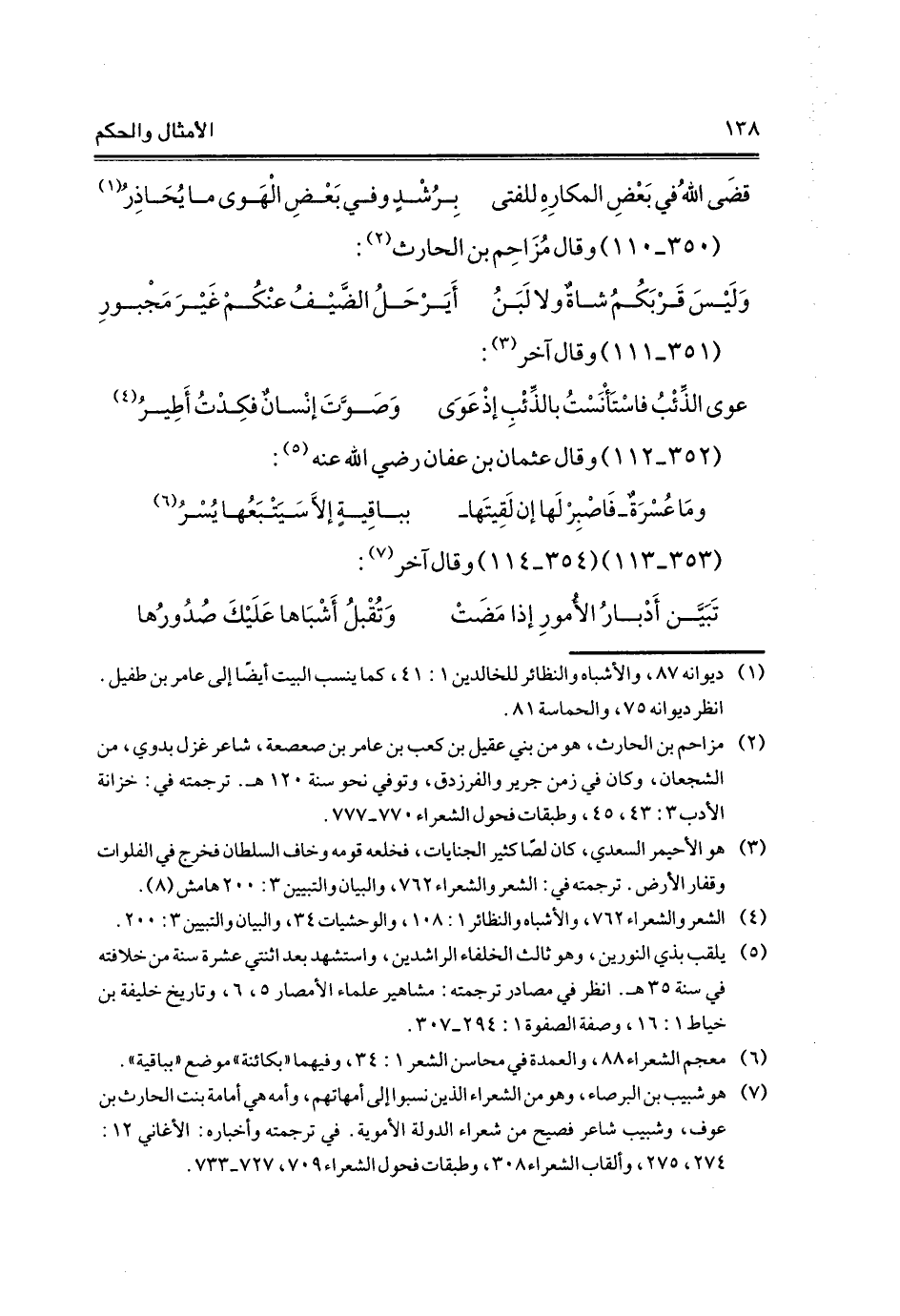 (¬1) ديوانه 87، والأشباه والنظائر للخالدين 1: 41، كما ينسب البيت أيضًا إلى عامر بن طفيل. انظر ديوانه 75، والحماسة 81.