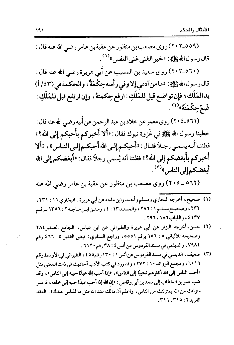 (559 - 202) روى مصعب بن منظور عن عقبة بن عامر - رضي الله عنه - قال: قال رسول الله - صلى الله عليه وسلم -: "خير الغنى غنى النفس" (¬1).