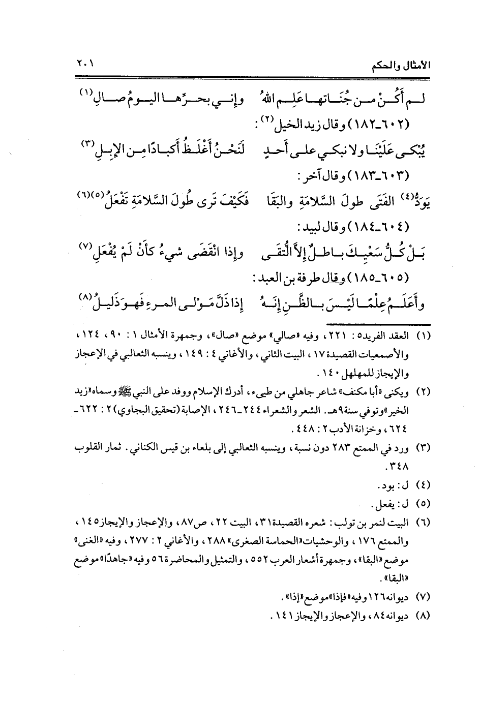 (¬3) ورد في الممتع 283 دون نسبة، وينسبه الثعالبي إلى بلعاء بن قيس الكناني. ثمار القلوب 348.