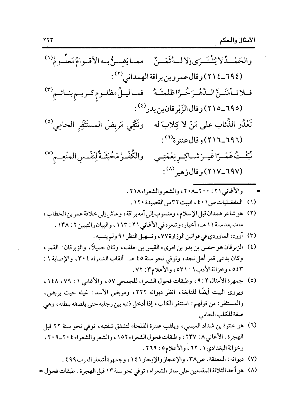 (¬4) الزبرقان هو حصن بن بدر بن امرئ القيس بن خلف، وكان جميلًا، والزبرقان: القمر، وكان يدعى قمر أهل نجد، وتوفي نحو سنة 45 هـ. ألقاب الشعراء 304، والإصابة 1: 543، وخزانة الأدب 1: 531، والأعلام 3: 72.