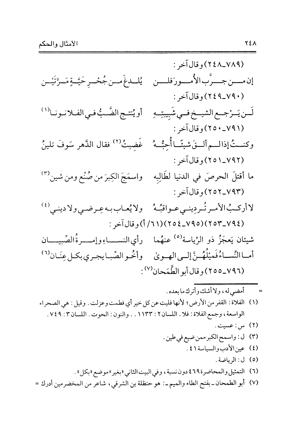 (¬6) التمثيل والمحاضرة 469 دون نسبة، وفي البيت الثاني "بغير" موضع "بكل".
