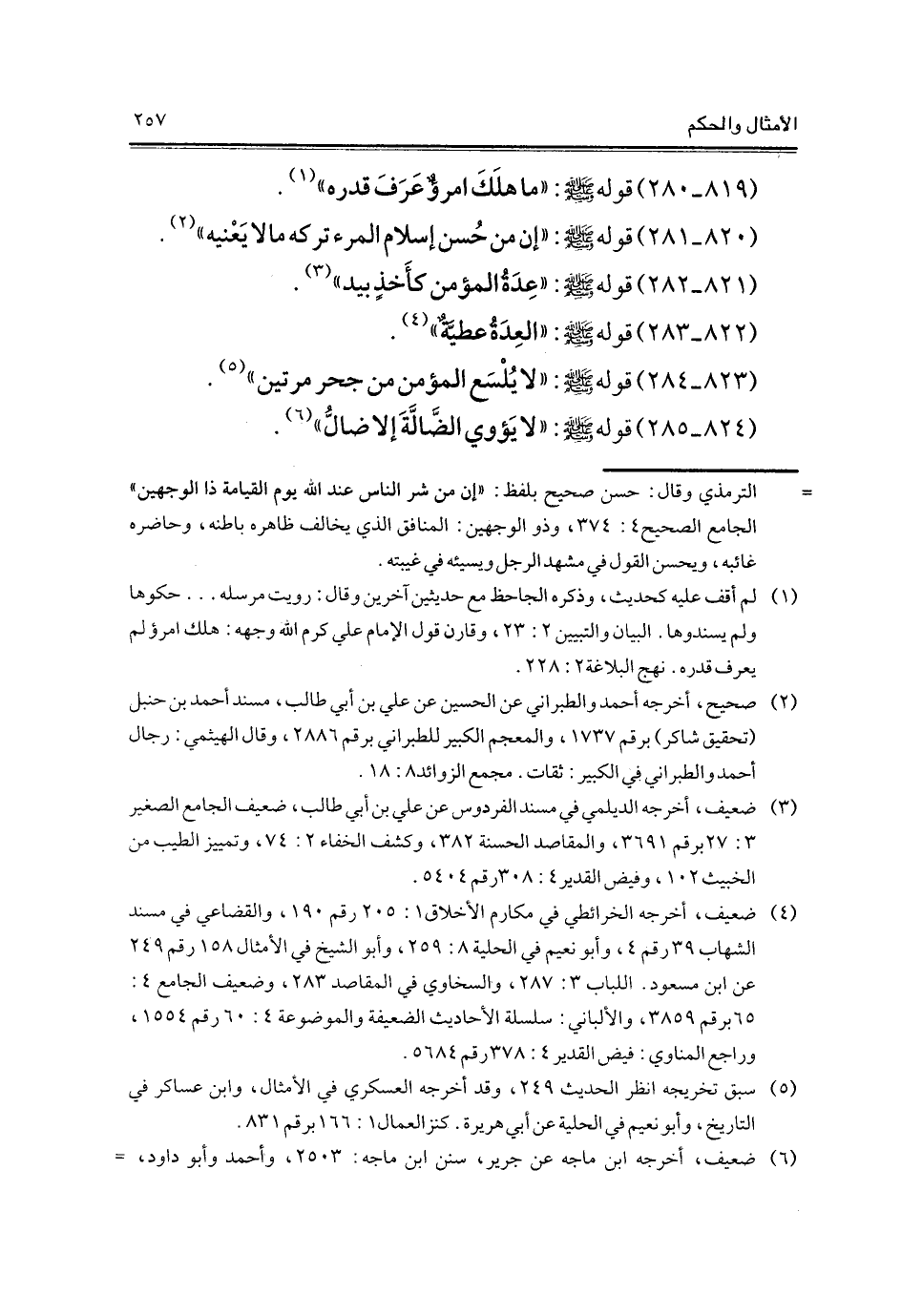 (¬5) سبق تخريجه انظر الحديث 249، وقد أخرجه العسكري في الأمثال، وابن عساكر في التاريخ، وأبو نعيم في الحلية عن أبي هريرة. كنز العمال 1: 166 برقم 831.