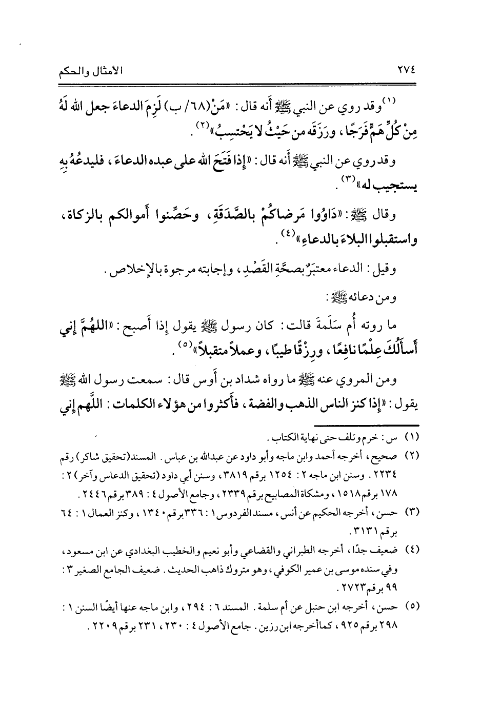 (¬2) صحيح، أخرجه أحمد وابن ماجه وأبو داود عن عبد الله بن عباس. المسند (تحقيق شاكر) رقم 2234. وسنن ابن ماجه 2: 1254 برقم 3819، وسنن أبي داود (تحقيق الدعاس وآخر) 2: 178 برقم 1518، ومشكاة المصابيح برقم 2339، وجامع الأصول 4: 389 برقم 2446.