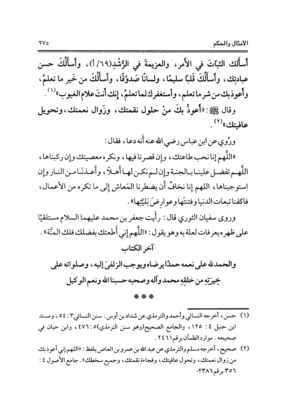 (¬1) حسن، أخرجه النسائي وأحمد والترمذي عن شداد بن أوس. سنن النسائي 3: 54، ومسند ابن حنبل 4: 125، والجامع الصحيح (وهو سنن الترمذي) 5: 476، وابن حبان في صحيحه. موارد الظمآن برقم 2461.