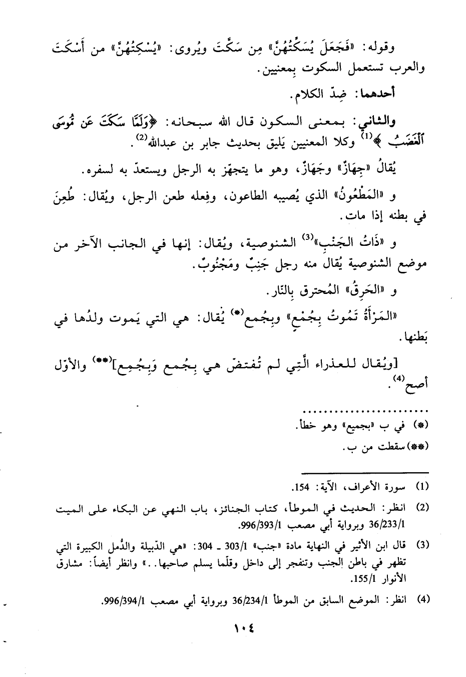 وَالثَّانِي: بِمَعْنى السّكُون قَالَ الله سُبْحَانَهُ: {وَلما سكت عَن مُوسَى الْغَضَب} وكلا الْمَعْنيين يَلِيق بِحَدِيث جَابر بن عبد الله.