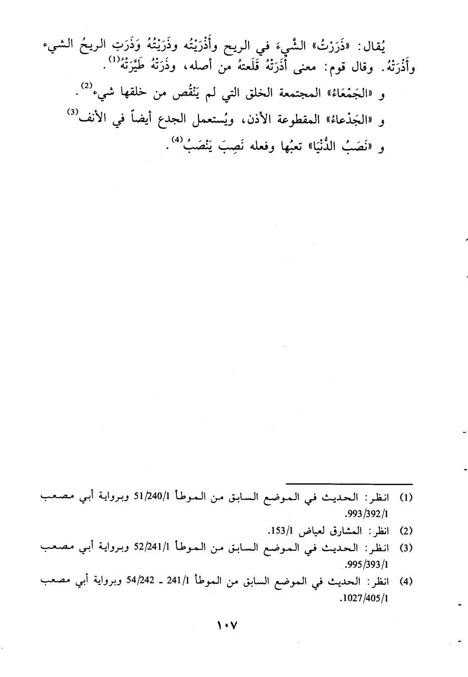 يُقَال: " ذررت " الشَّيْء فِي الرّيح وأَذْرَيْتُه وَذريته وذرت الرّيح الشَّيْء وأذرته. وَقَالَ قوم: معنى أذرته قلعته من أَصله، وذرته طيرته.