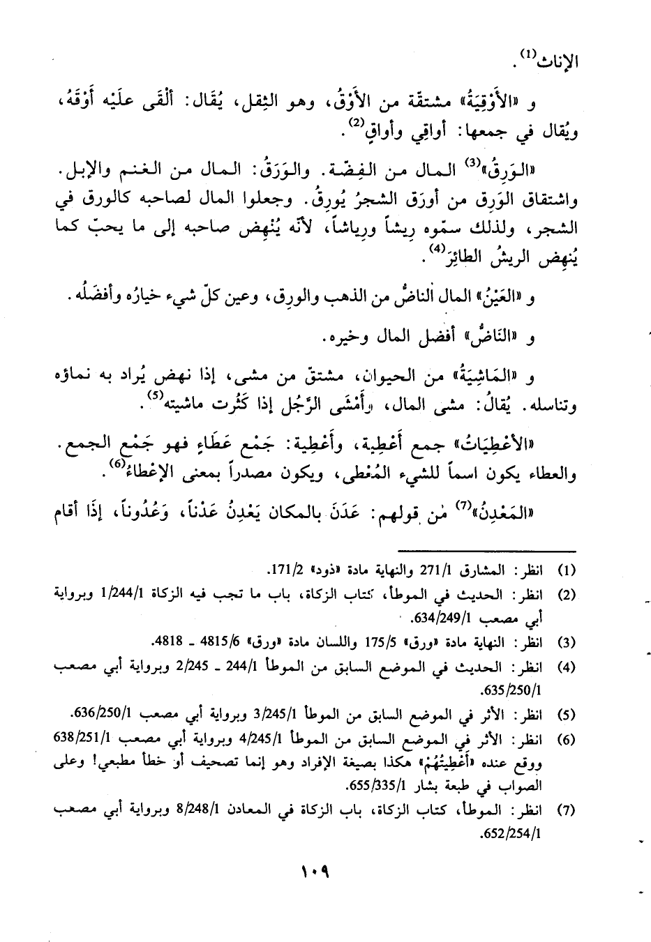 " الْوَرق " المَال من الْفضة. وَالْوَرق: المَال من الْغنم وَالْإِبِل. واشتقاق الْوَرق من أَوْرَق الشّجر يورق. وَجعلُوا المَال لصَاحبه كالورق فِي الشّجر، وَلذَلِك سموهُ ريشا ورياشا، لِأَنَّهُ ينْهض صَاحبه إِلَى مَا يحب كَمَا ينْهض الريش الطَّائِر.