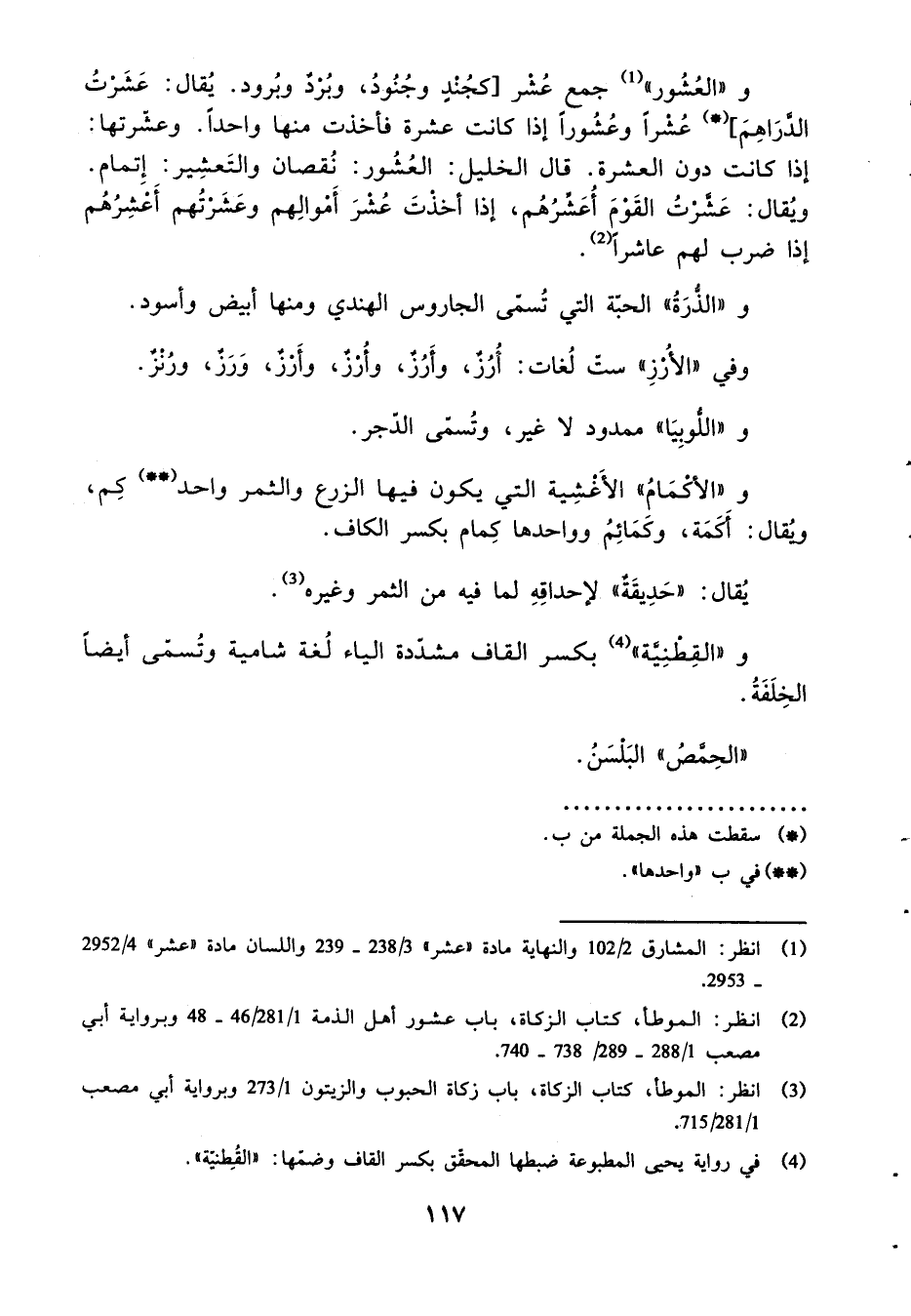 و " العشور " جمع عشر [كجند وجنود، وَبرد وبرود. يُقَال: عشرت الدَّرَاهِم] عشرا وعشورا إِذا كَانَت عشرَة فَأخذت مِنْهَا وَاحِد. وعشرتها: إِذا كَانَت دون الْعشْرَة. قَالَ الْخَلِيل: العشور: نُقْصَان والتعشير: إتْمَام. وَيُقَال: عشرت الْقَوْم أعشرهم، إِذا أخذت عشر أَمْوَالهم وعشرتهم أعشرهم إِذا ضرب لَهُم عاشرا.