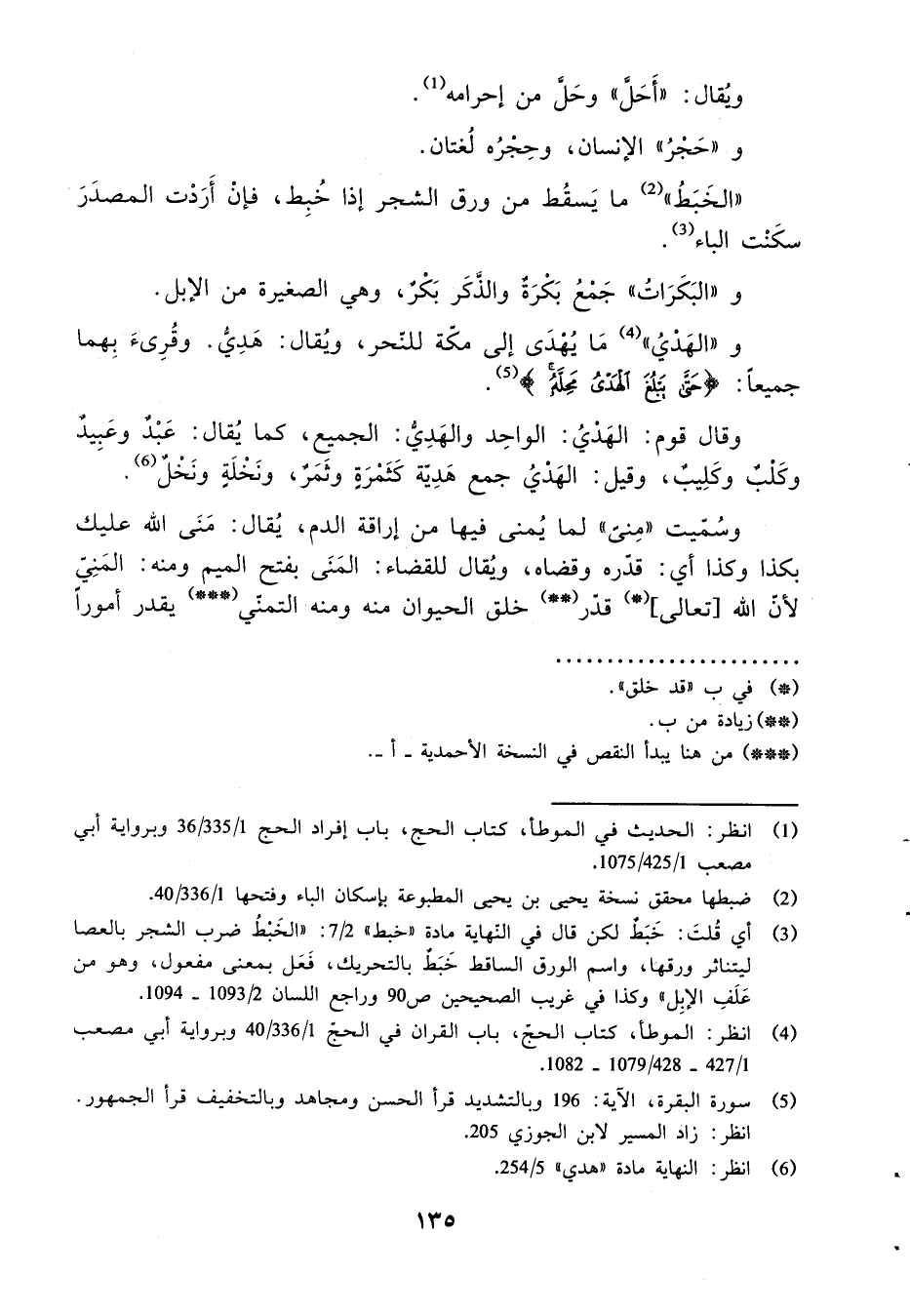 وَقَالَ قوم: الْهَدْي: الْوَاحِد وَالْهَدْي: الْجَمِيع، كَمَا يُقَال: عبد وَعبيد وكلب وكليب، وَقيل: الْهَدْي جمع هَدِيَّة كثمرة وثمر، ونخلة ونخل.
