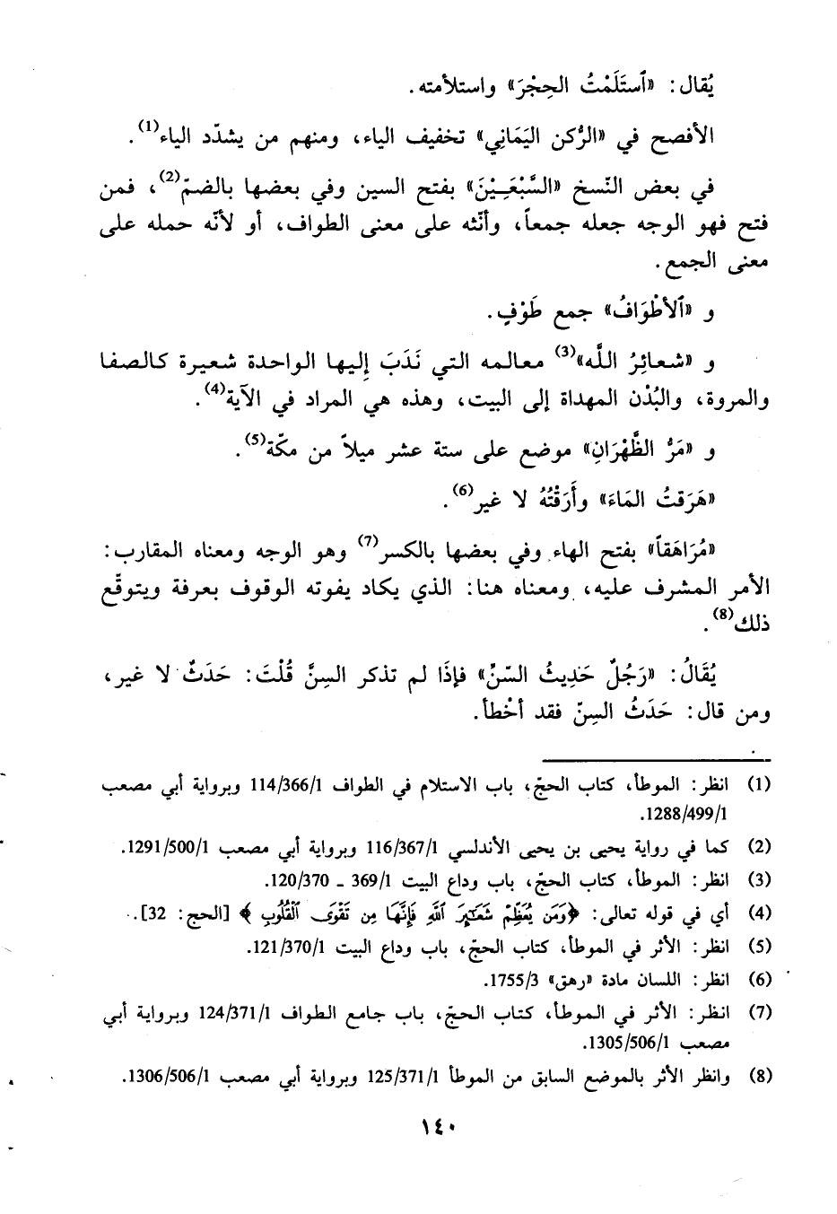 فِي بعض النّسخ " السّبْعين " بِفَتْح السِّين وَفِي بَعْضهَا بِالضَّمِّ، فَمن فتح فَهُوَ الْوَجْه جعله جمعا، وأنثه على معنى الطّواف، أَو لِأَنَّهُ حمله على معنى الْجمع.