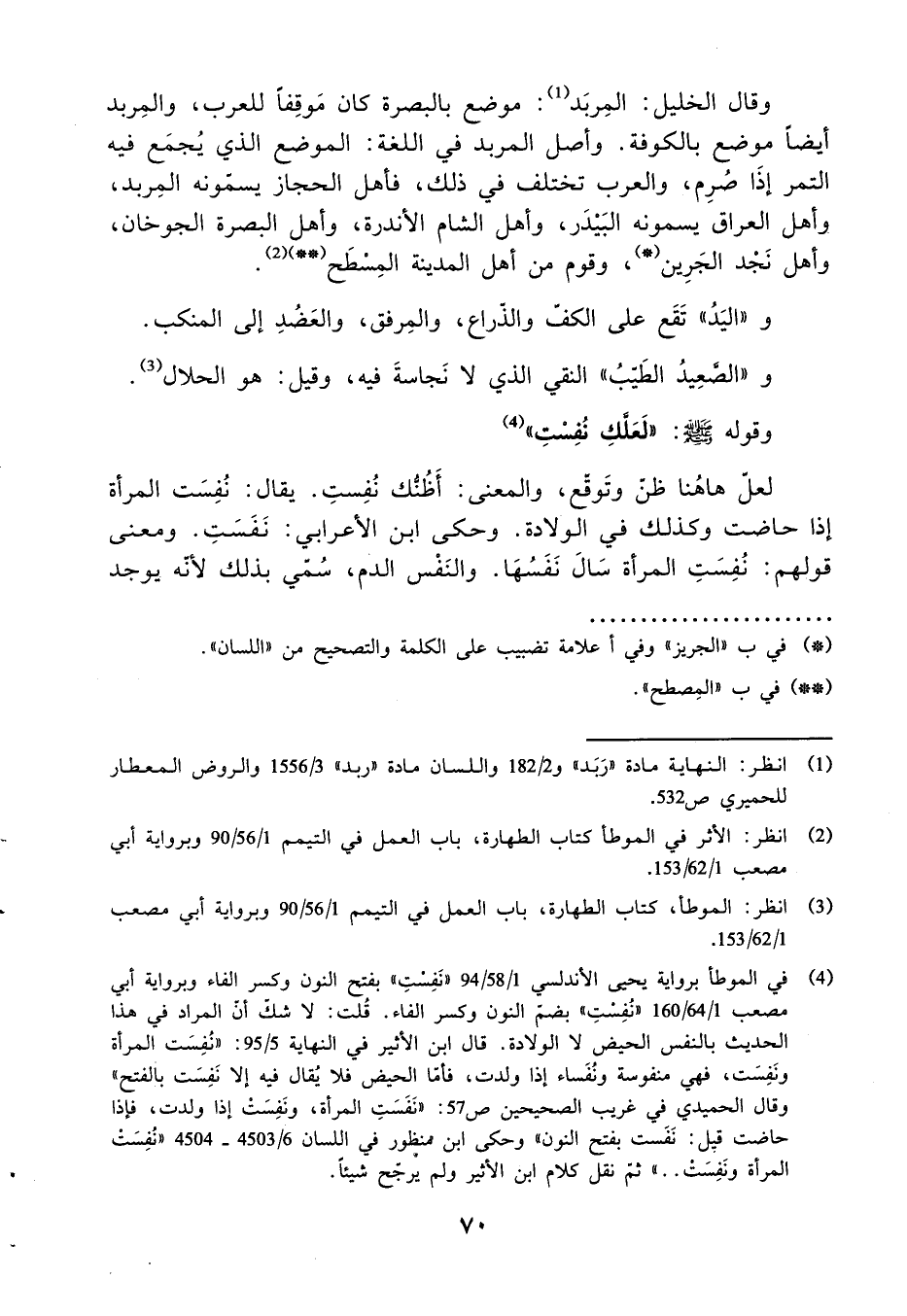 و" الصَّعِيد الطّيب " النقي الَّذِي لَا نَجَاسَة فِيهِ، وَقيل: هُوَ الْحَلَال. وَقَوله - صَلَّى اللَّهُ عَلَيْهِ وَسَلَّم َ -: " لَعَلَّك نفست "