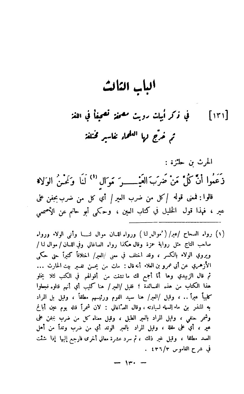 الباب الثالث: في ذكر أبيات رويت مصحفة تصحيفًا في اللغة