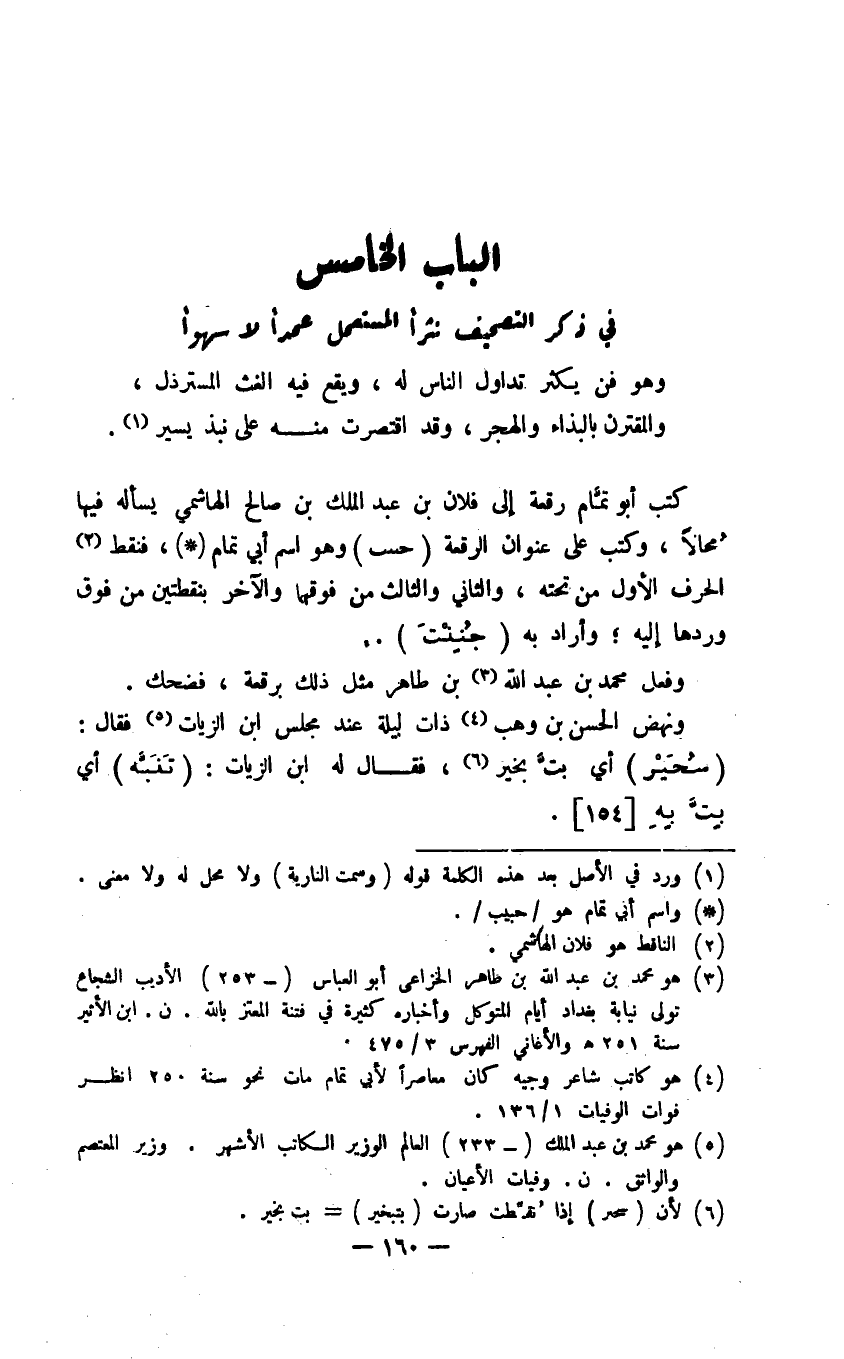 الباب الخامس: في ذكر التصحيف نثرًا المستعمل عمدًا لا سهوًا