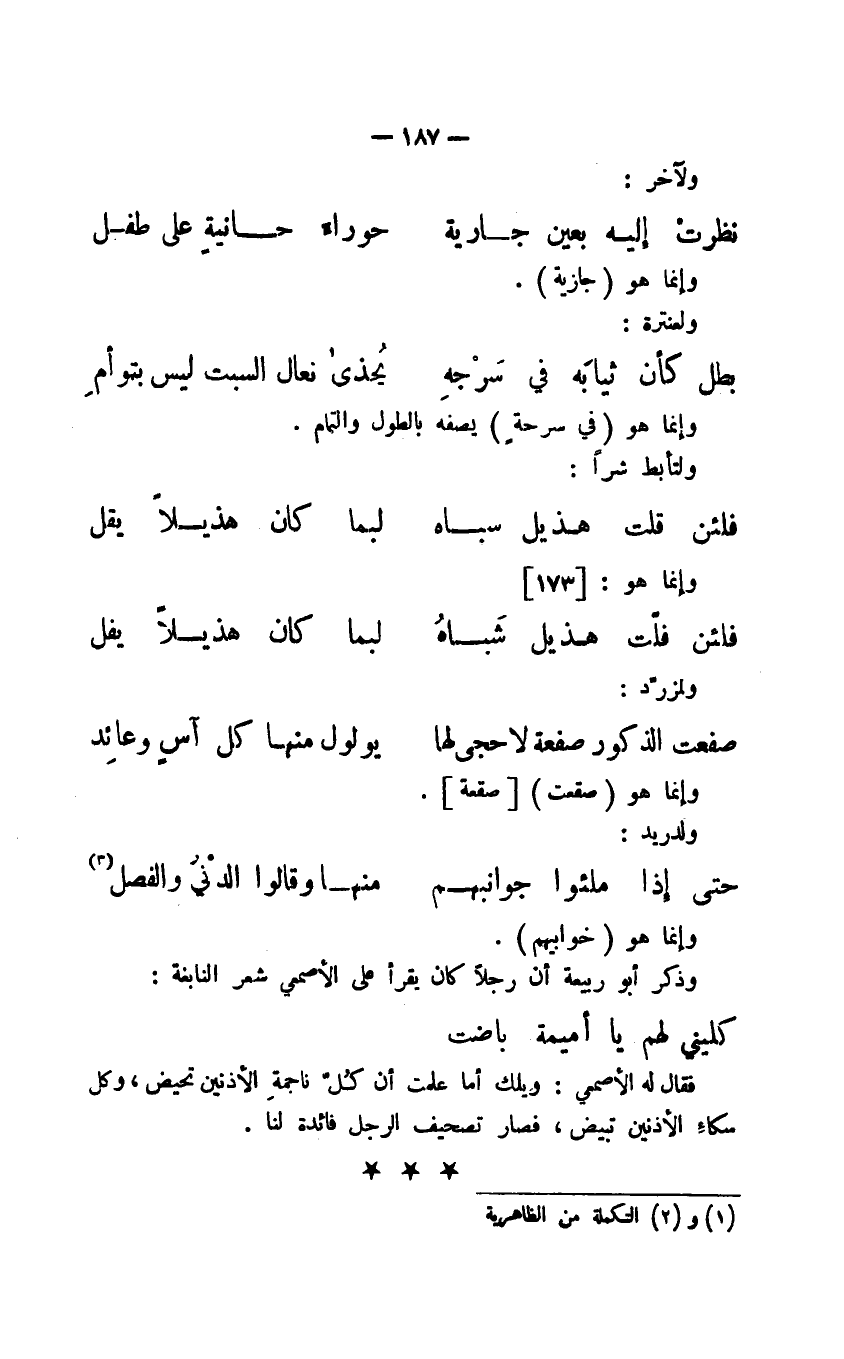 فقال له الأصمعي: ويلك أم علمت أن كل ناجمة الأذنين تحيض، وكل سكاء الأذنين تبيض، فصار تصحيف الرجل فائدة لنا.