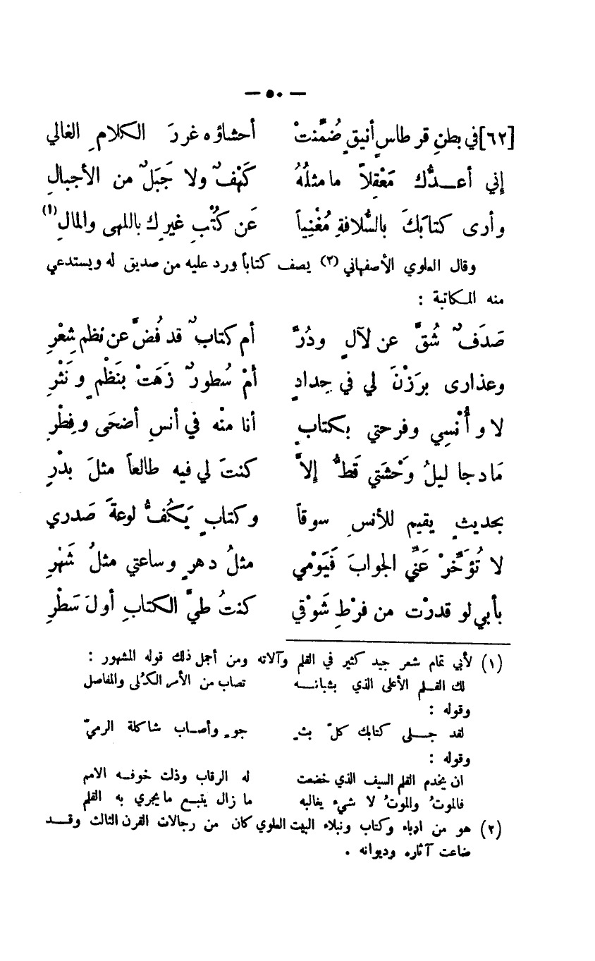 وقال العلوي الأصفهاني يصف كتابًا ورد عليه من صديق له ويستدعي منه المكاتبة: