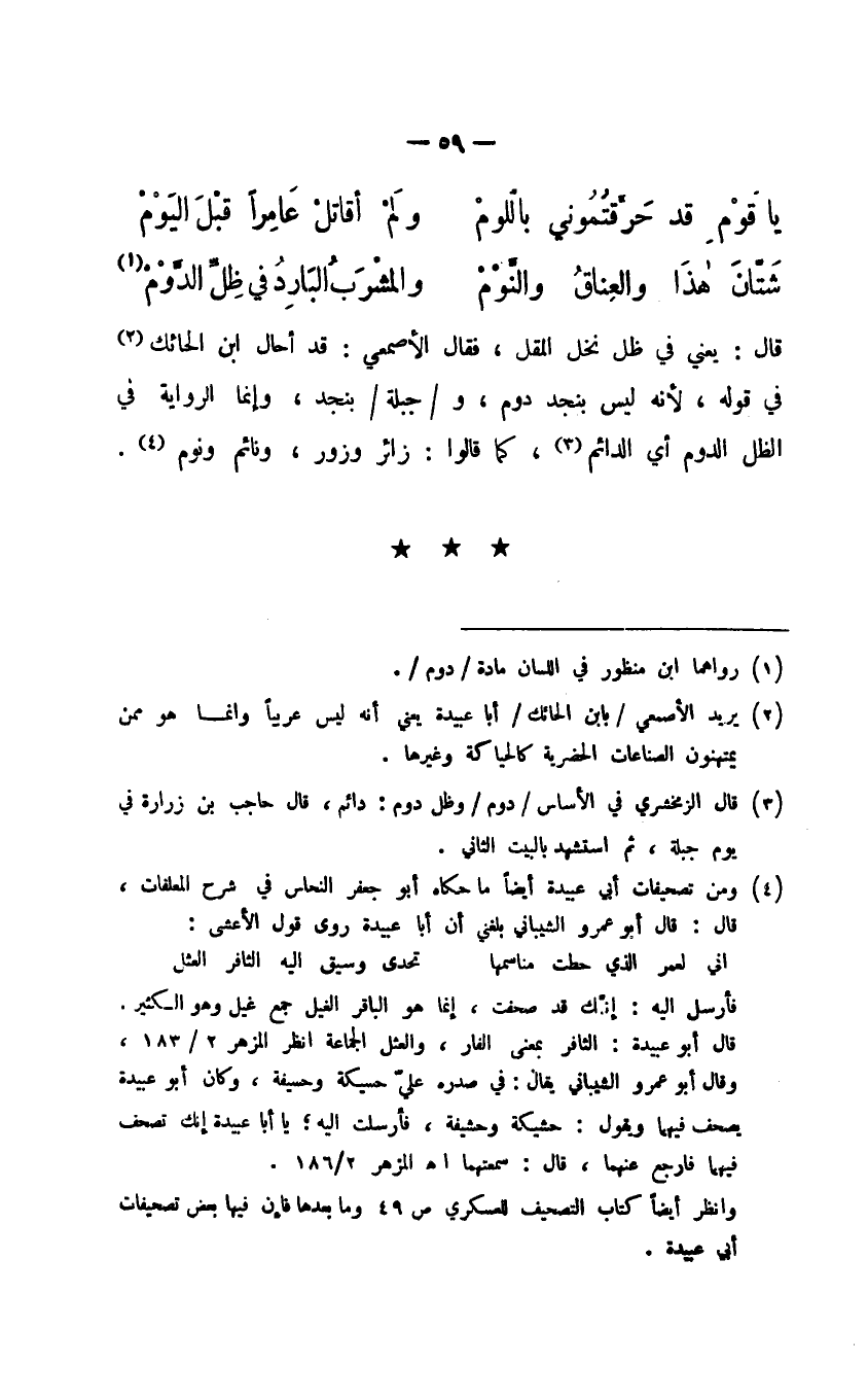 شَتَّانَ هذَا والعِناقُ والنَّوْمْ ... والمشْرَبُ البَارِدُ في ظِلِّ الدَّوْمْ