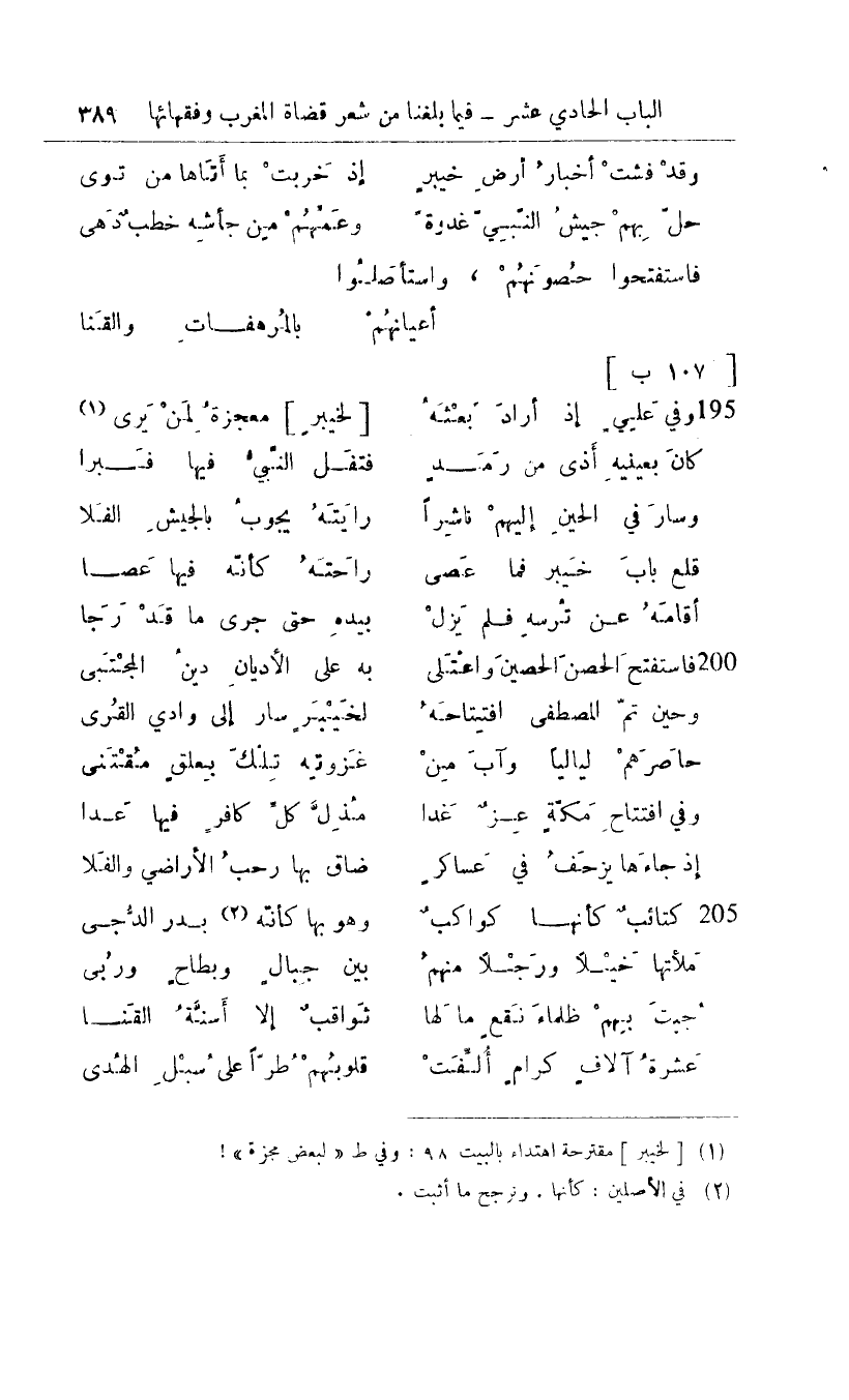 (¬1) [لخيبر] مقترحة اهتداء بالبيت 98: وفي ط «لبعض مجزة»!