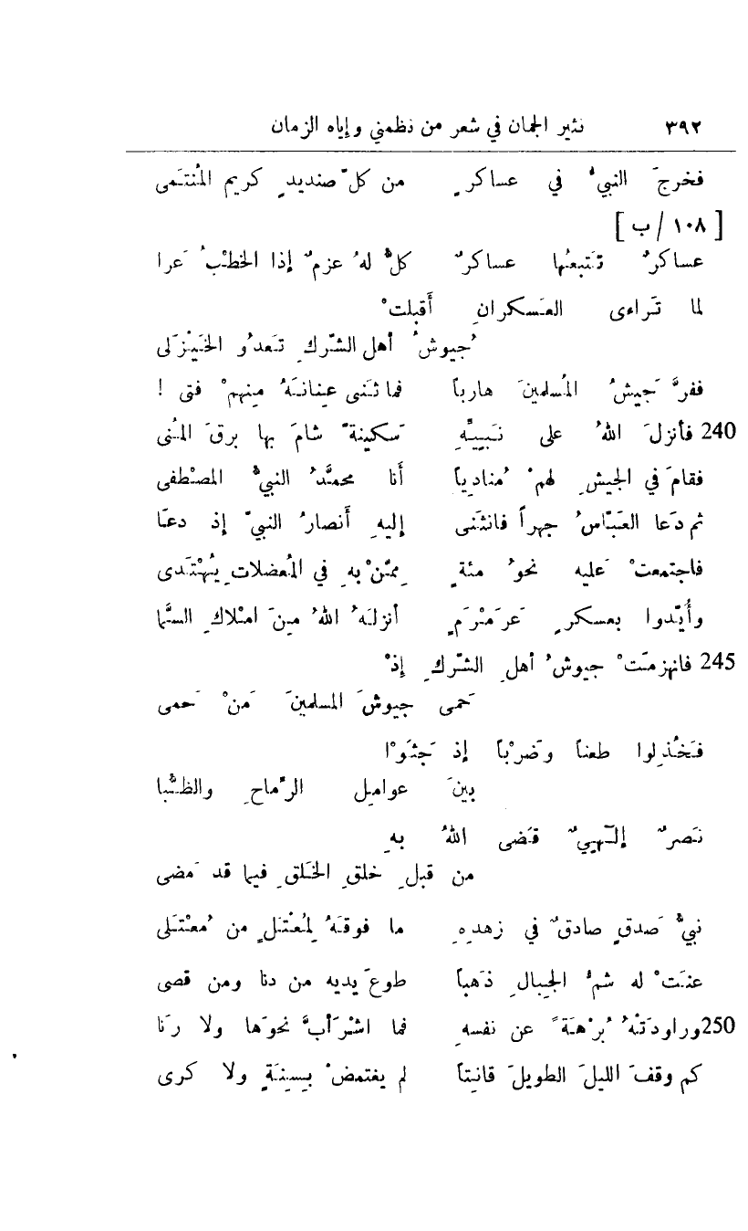245 فانهزمت جيوش أهل الشّرك إذ ... حمى جيوش المسلمين من حمى
