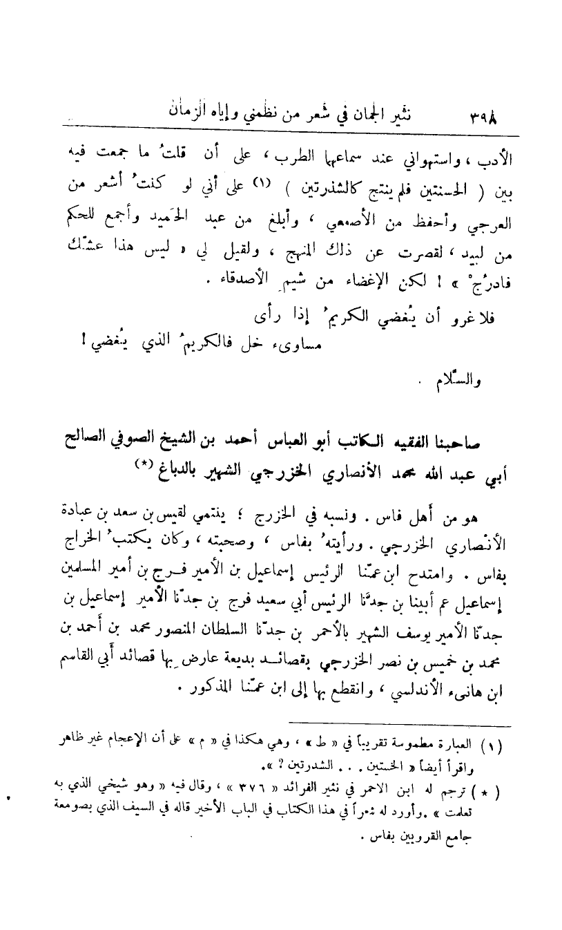 (*) ترجم له ابن الاحمر في نثير الفرائد «376»، وقال فيه «وهو شيخي الذي به تعلمت». وأورد له شعرا في هذا الكتاب في الباب الأخير قاله في السيف الذي بصومعة جامع القرويين بفاس.