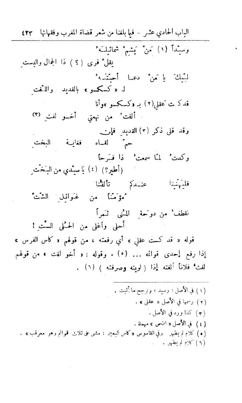 قد كنت عقلي (¬2) ب «كسكسو» وأنا ... ألفت من نهمتي أخو لفت 3