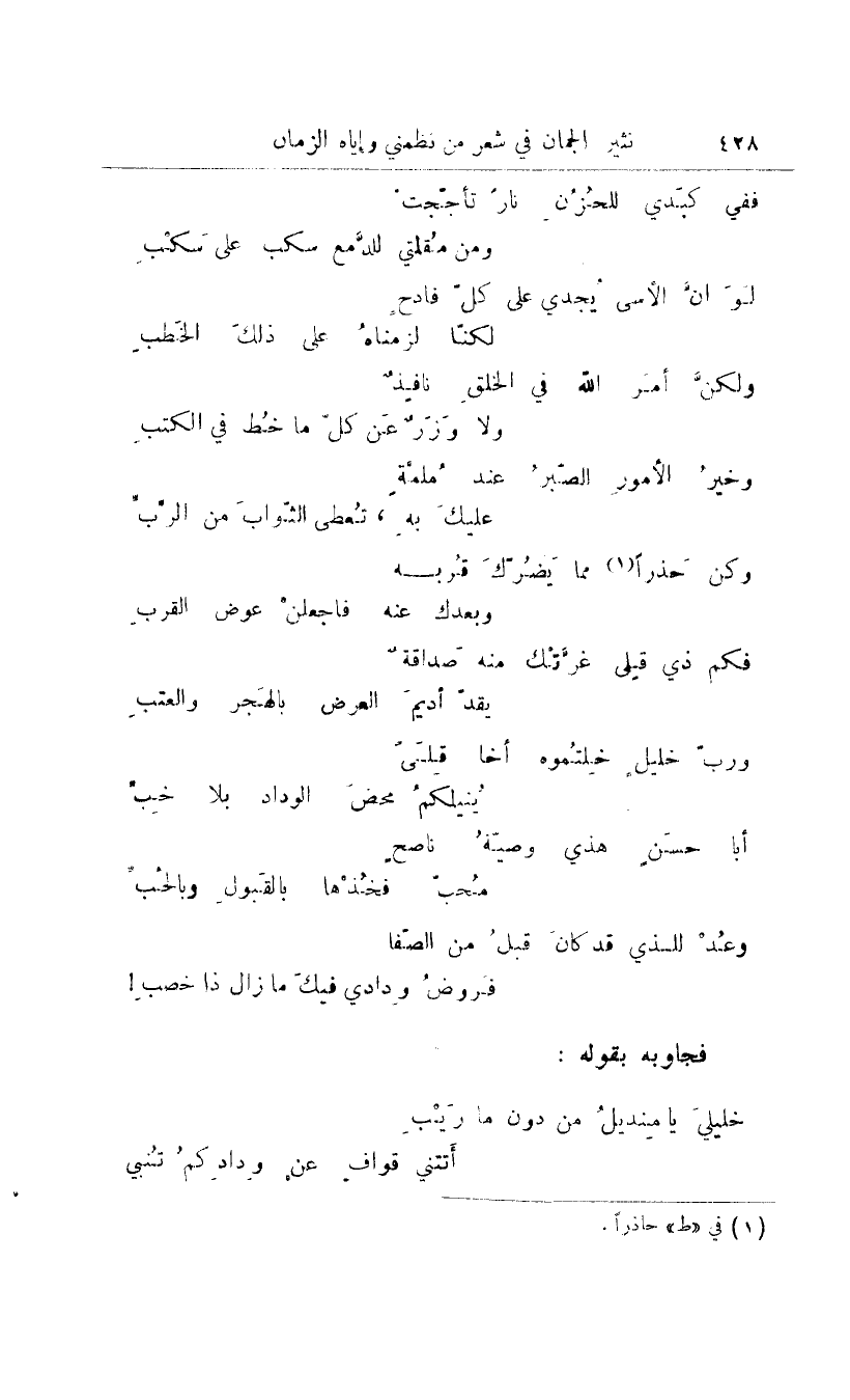 ولكنّ أمر الله في الخلق نافذ ... ولا وزر عن كلّ ما خط في الكتب