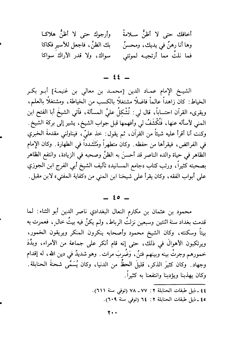 (2) ذيل طبقات الحنابلة 2:64 (توفي سنة 609) .