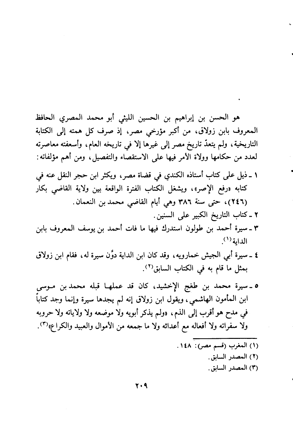 5 - سيرة محمد بن طغج الإخشيد، كان قد عملها قبله محمد بن موسى ابن المأمون الهاشمي، ويقول ابن زولاق إنه لم يجدها سيرة وإنما وجد كتاباً في مدح هو أقرب إلى الذم، " ولم يذكر أبويه ولا موضعه ولا ولاياته ولا حروبه ولا سفراته ولا أفعاله مع أعدائه ولا ما جمعه من الأموال والعبيد والكراع " (3) .