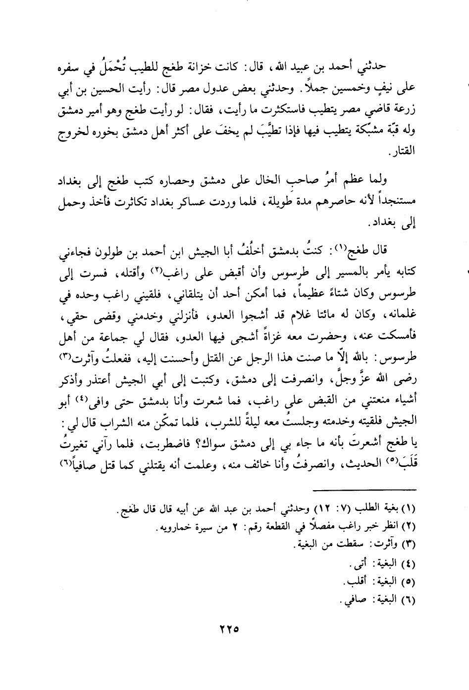 (1) بغية الطلب (7: 12) وحدثني أحمد بن عبد الله عن أبيه قال قال طغج.